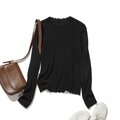 • こだわりのディテール: やや開きの広いクルーネックで首元をすっきり見せ、袖口と裾には可愛らしいピコデザインをあしらいました。