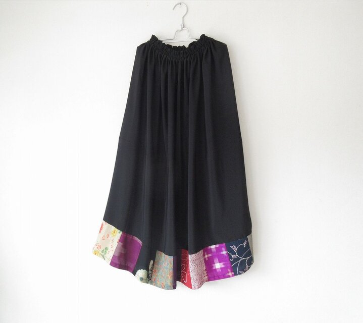 ・黒の着物(留袖)の裾に色々な着物のパッチワーク シルク100%