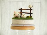 牧場内に佇んでいるブタの親子と柵にとまるシマエナガを表現しています。