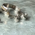 艶のあるテクスチャーのシルバーフープに細身のゴールドロープが埋め込まれたデザイン。