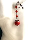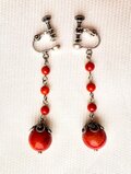 イヤリング/ピアス 赤 サンゴ シルバー レディースブランド 四つ玉(大x1,小x3)