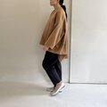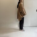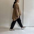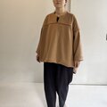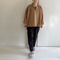 前ヨークにスリット開きがあり、脱ぎ着はかぶることからポンチョのように着こなして頂けたらと思います。