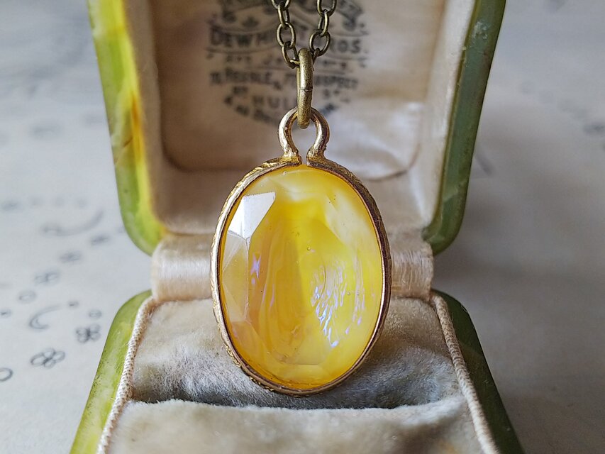 1920年代、チェコボヘミア地方アンティーク、約18×13㎜のドラゴンズブレスGlassを用いてお作りしましたネックレスです。