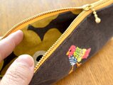 コーデュロイの生地に刺繍しました。裏地つきのしっかりとしたつくりです。