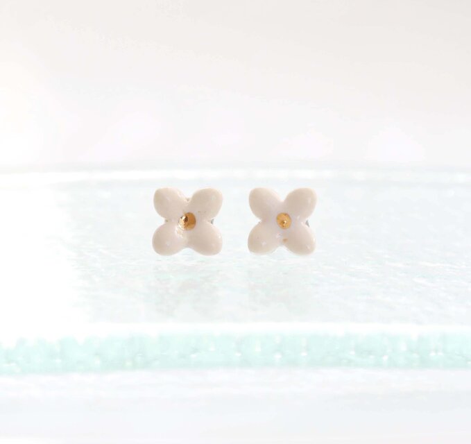 釉薬の色が冴えるきめ細やかな白い陶土を使用して制作した耳飾りです。