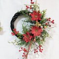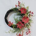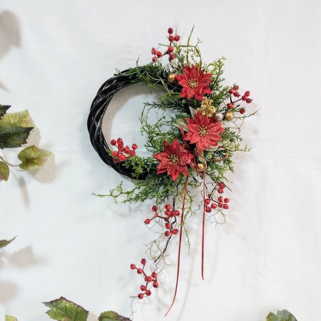 ★【数量限定販売】ポインセチア(レッド)と サンキライ の クリスマスリース AX605 アーティフィシャルフラワー