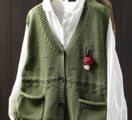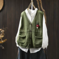 新作|コットンベスト レディース Vネック オーバーサイズ 春 秋 羽織り ノースリーブ アウター
