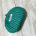 半円模様が縦に連なった、ポップで華やかなグリーンの生地を使用しています。