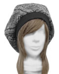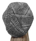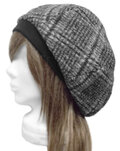 ゆったりルーズ・リブ付ベレー帽◆イタリア製 グレンチェック柄ウール混フランネルニット/グレー系 ◇寒い季節におすすめ・小顔効果◇