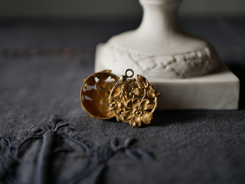 透かし細工の花 アンティークチャーム ペンダントトップ フランスアンティーク アンティークのある暮らし