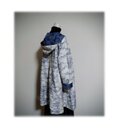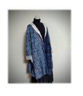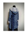 16 1点物 デッドストック大島紬 リバーシブルAラインコート 羽織り物 フード付き スプリングコート オフ白×青