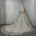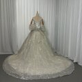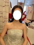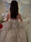 実例写真!豪華!ウェディングドレス ベアトップ ふっくら柔らかなバックリボン シークインチュール 憧れのドレス 結婚式