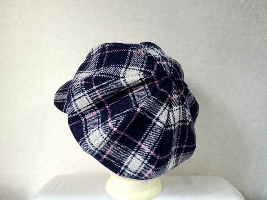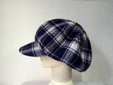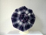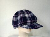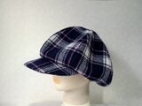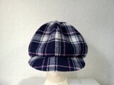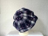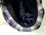 魅せる帽子☆チェックが可愛い♪大きめクラウンのウールキャスケット~ネイビー&オフホワイト