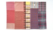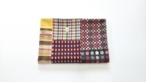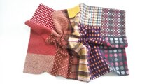 高品質の尾州ウール(バーズアイ、チェック、ヘリンボーン、市松模様)をはじめ、色柄違いの秋冬素材をパッチしてひざ掛けを作りました。片面には、やさしい肌ざわりのフリースを合わせました。