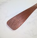 カリン材のスパチュラです。小さなフライパンやお鍋でのちょっとした調理に便利です。一般的なスパチュラよりも柄を厚く仕上げていますので使いやすいと思います。毛羽立ちにくい加工をしていますので、気持ちよく使用出来ると思います。