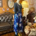 スカート部分は、複数の浴衣地を組み合わせたパッチワークデザイン。