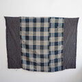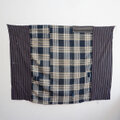 五幅分の生地が連なっており、藍染の格子と縞木綿のコントラストが美しく、古布としての味わいを存分に楽しめる一枚です。