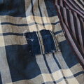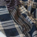 使用されている生地は2種類で、深い藍色の格子柄と、縞模様の木綿生地が組み合わされています。