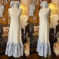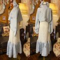 【 着物 ハンドメイド ワンピース パーティー ドレス 和洋折衷 コラージュ リメイク 切り替え レース× 淡藤色×和模様 O-84】
