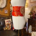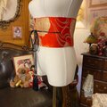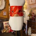 圧倒的な存在感を放つ、真紅の地に豪華な金彩があしらわれた名古屋帯をリメイクしたサッシュベルト。
