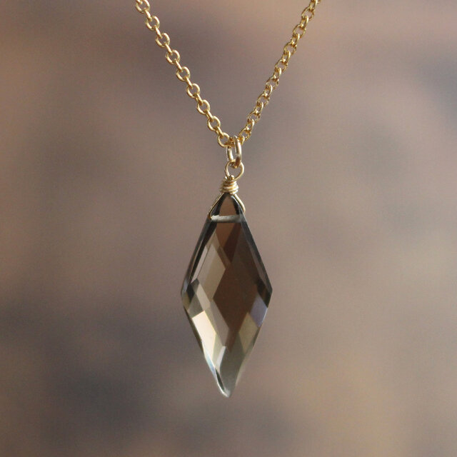 スモーキークォーツ<ダイヤカット>のネックレス(K14GF)