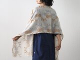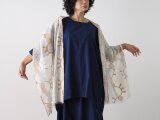 丈200cm、幅53cmとかなり大判ですので、巻いたり、纏ったりとアレンジがたのしめます。最初はハリがありますが、洗いをかけるほどふわっと肌馴染み良く変化していきます。左右非対称なデザインとなっていますので、巻き方により違う印象になります。