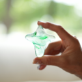 この色のÂMEの特徴は、そよ風の吹く草原のような穏やかな印象と、静かな湖のような深い印象を併せ持つところにあります。小さなオブジェですが、光に透かすと綺麗に輝きます。インテリア、ペーパーウェイトとしてもおすすめです。