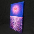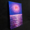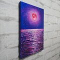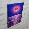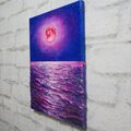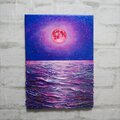 「ストロベリームーン」は、夜空に浮かぶ銀色の星々と、柔らかなピンク色に光る満月が描かれた特別な油絵作品です。満月の下には穏やかな海が広がり、その海面には月光が道のように煌めいています。この作品は、神秘的な夜の美しさを堪能できる一作で、見る人の心を惹きつけることでしょう。