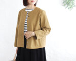 カーディガン感覚でさっと羽織れる、大人のためのノーカラージャケットです。