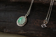 美しいエメラルドinクオーツの石をシンプルなネックレスに仕上げました。