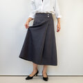 **上品さと快適さが融合したラミーリネンのラップ風スカート**