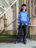 タイダイ 長袖 Tシャツ Mサイズ 曼荼羅 パープル×ブルー×ブラック HD25-02