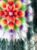 全て染色されるタイダイ染め、絞り染めの作品群。