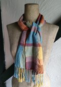 残糸利用 綿マフラー 送料無料 糸と糸素晴らしい!とても丁寧に織られていて、色合いも素敵です。すごく気に入りました!大切につかわせていただきます。ありがとうございました。