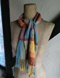 着け心地の良い生地と落ち着いた水色や黄色が織り込まれてカジュアルな服装に合いそうです。明るい色合いで冬場でも元気をもらえそうです。早々にありがとうございました。