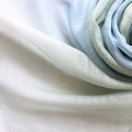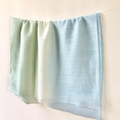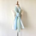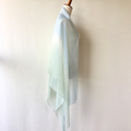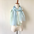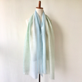 落ち着いた柔らかなブルー色とグリーンのグラデーションに染めました。優しい女性らしい柔らかな色合いです。手染めならではの、他にはない優しいストールです。
