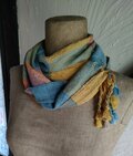 残糸利用 綿マフラー 送料無料 糸と糸素晴らしい!とても丁寧に織られていて、色合いも素敵です。すごく気に入りました!大切につかわせていただきます。ありがとうございました。