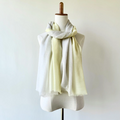 淡いイエローとグレージュの優しい女性らしい柔らかな色合いです。暗くなりがちな秋冬のコーディネートでも、ストールでお顔周りの印象を明るくしてくれます♪