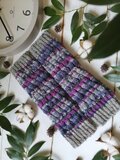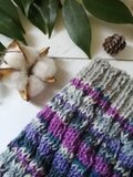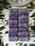 現在廃盤の人気シリーズ"ポプリ"「花の海」を混ざり毛糸でまとめた、手編みのスパイラル編みレッグウォーマーです。