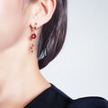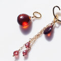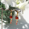 ヘパイストスの操る炎をイメージして、燃えるような赤を3種類揺らめかせるピアスをお仕立てしました。