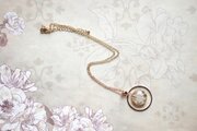 ゴールドを背景にお花を一輪咲かせたレジンにリングパーツをあしらったペンダント。