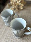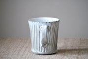 しのぎで縦方向に細かく線刻を施したマグカップです。