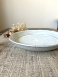 リムの部分は緩やかに立ち上がり、見込みの部分は平らになっていますので、ステーキやハンバーグなどのおかずを盛りつけるのはもちろんカレーやパスタなど用途の広い皿です。
