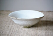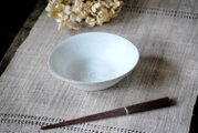 ややざらつきのある土をろくろ挽きし、マットな質感の白釉をかけて仕上げました。