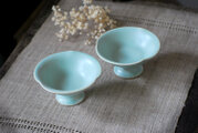 白い土でろくろ成形し、淡いグリーンの釉薬をかけたデザート皿です。