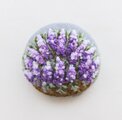 ブルーグレー色の綿リネン生地に可愛いラベンダーの花カゴをモチーフにした刺繍ブローチです。