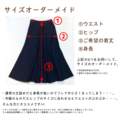 メッセージにて、「身長・ウエスト・ヒップ・ご希望の着丈」をお知らせください。 (※出来上がり寸ではなく、ご自身の計測した実寸を記入してください。例:身長160㎝、ウエスト65㎝、ヒップ90㎝、着丈90㎝)