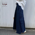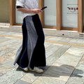 岡山デニムのクレイジーパターンマキシスカート|サイズ・デザインカスタム可|上質セルビッチデニムのゆるっとマーメイド
