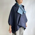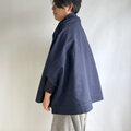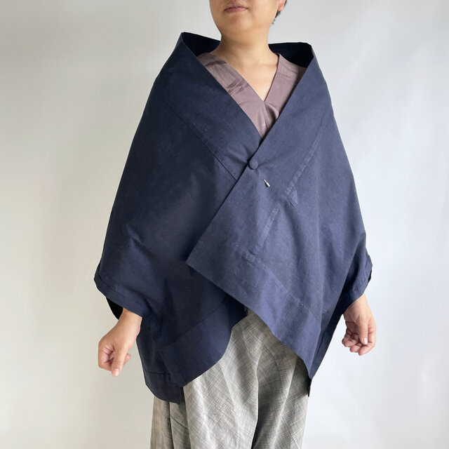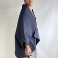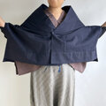 【1点もの】さんかく羽織 ブローチ付き -絹着物地 真綿紬 紺 (ヴィンテージ) TRH697