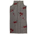 グレー地に咲く赤い椿が目を引く華やかな一着です。